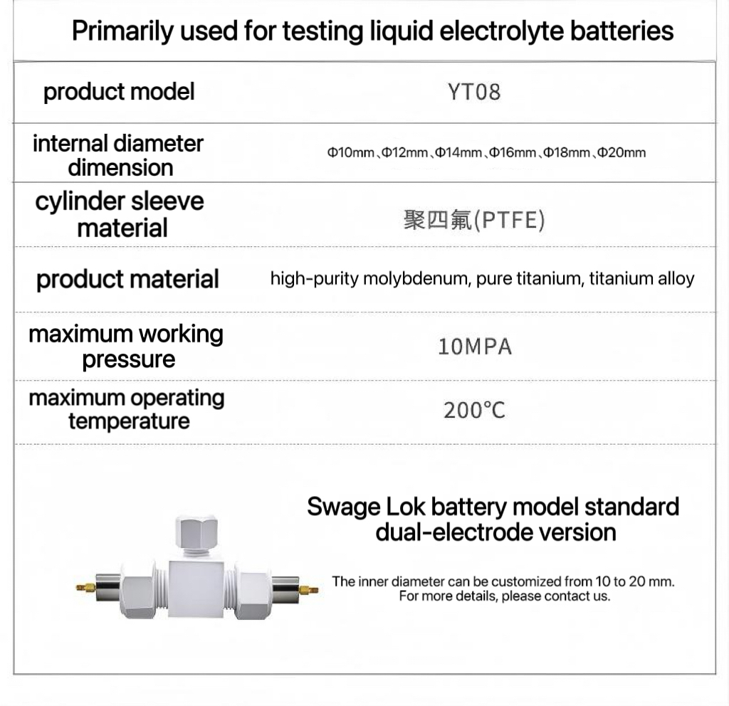 Swagelok Simulated battery mold / three-electrode setup / silver chloride setup