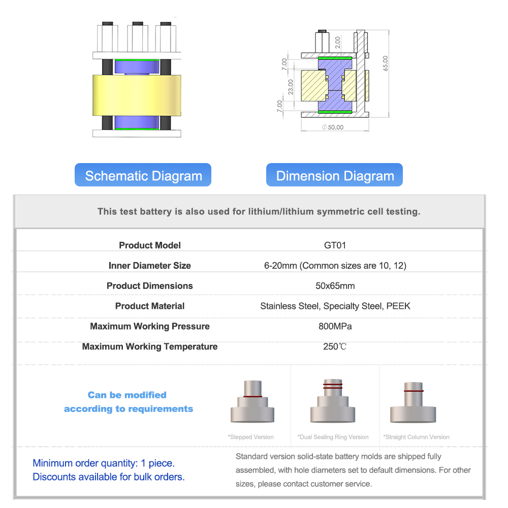 Mold design considers sealing and is suitable for testing chemical and halide battery systems, ensuring the stability of the testing environment.